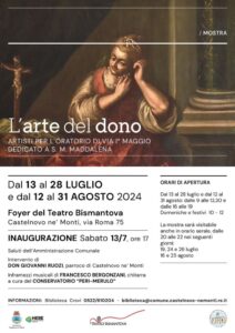 La mostra sarà visitabile anche in orario serale, dalle 20.00 alle 22.00 nei seguenti giorni: 19, 24 e 26 luglio – 16 e 25 agosto