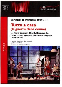 Infuria la Grande Guerra e l’Italia è impegnata nel terribile conflitto che miete vite dalle trincee del Carso ai picchi delle Dolomiti. Mentre gli uomini sono al fronte, le donne si prodigano nel loro storico ruolo di madri e di mogli, ma molte di loro, per arrotondare il magro bilancio familiare, accettano le offerte di lavoro che piovono dalle imprese, i cui ranghi sono rimasti sguarniti a causa della coscrizione dei propri dipendenti. Improvvisamente le donne escono dalle case e s’improvvisano tranviere, operaie, impiegate, suscitando il grande scandalo dei molti benpensanti che temono il sovvertimento “dell’ordine naturale delle cose”. Del primo, devastante, conflitto mondiale, di cui in questi anni ricorre il centenario, sono stati raccontati la durezza della vita di trincea, le vittime e gli eroi. “TUTTE A CASA” si concentra invece sull’aspetto, abbastanza inedito ma di enormi proporzioni, dell’ingresso delle donne nel mondo del lavoro. Senza dimenticare la tragedia sullo sfondo – che toccherà anzi da vicino una delle protagoniste – con toni della commedia e del sentimento, in una pièce dolce-amara tutta al femminile.